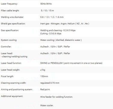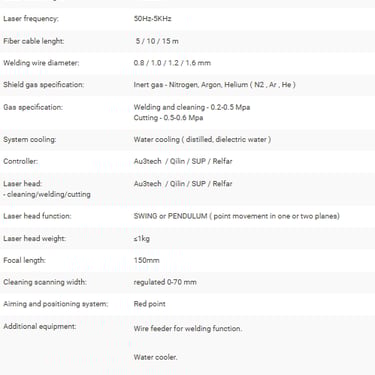 Kolm-ühes funktsioon: keevitus, lõikamine ja pindade puhastamine. Vesijahutusega süsteem kindlustab stabiilse töö ja pika eluea.