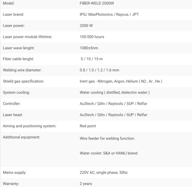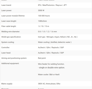 Tootevalikus on saadaval õhk- ja vesijahutusega laserkeevitusseadmed. Vastavalt vajadusele ja kliendi nõudmistele on seadet võimalik komplekteerida õiget tüüpi käpaga.